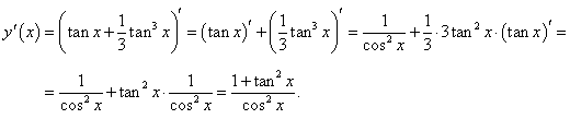 Используя правило дифференцирования частного двух функций, легко получить выражение для производной тангенса: