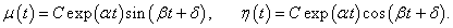 Действительная и мнимая части в последнем выражении образуют общее решение системы, которое имеет вид: