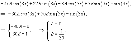 Здесь частное решение имеет аналогичную структуру и записывается как