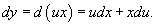 Мы получили однородное уравнение. Далее делаем замену: Y = uX, где u − некоторая функция X. Следовательн, dY = Xdu + udX. В итоге мы имеем: