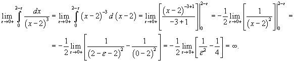 сходится, если оба интеграла в правой части верхнего равенства сходятся. В противном случае несобственный интеграл расходится.