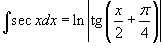 секанс выражается через тангенс. При этом множитель отделяется и используется для преобразования дифференциала. В результате весь интеграл (включая дифференциал) выражается через функцию tg x.