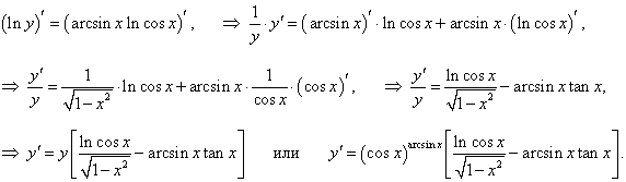 В примере 1 мы уже вычислили производную функции y = x x. Подставляя ее в верхнее соотношение, получаем следующее выражение для производной исходной функции: