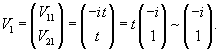 Полагаем V21 = t. Тогда V11 = −it. Следовательно, собственный вектор V1 равен: