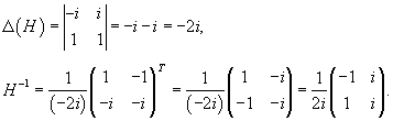 Здесь Hij обозначают алгебраические дополнения к элементам матрицы H. В результате вычислений находим: